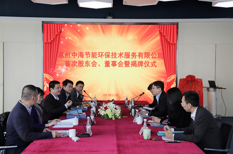 On the afternoon of December 18, the first shareholder meeting, board of directors as well as company’s unveiling ceremony of Huizhou Zhonghai Energy Conservation and Environmental Protection Technology Service Co., Ltd., which is jointly established by China Water and CNOOC, was held at Shenzhen Goldtact.